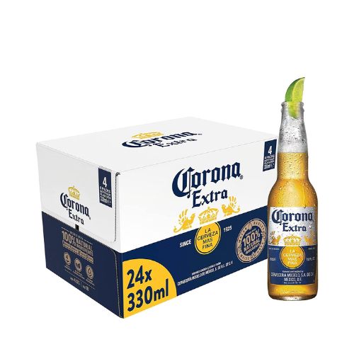 Carton complet de 24 Corona (standard 33 cl). Format pratique pour le service rapide au bar. Gestion simple des stocks pendant l’événement. Conditionnement adapté aux forts volumes.