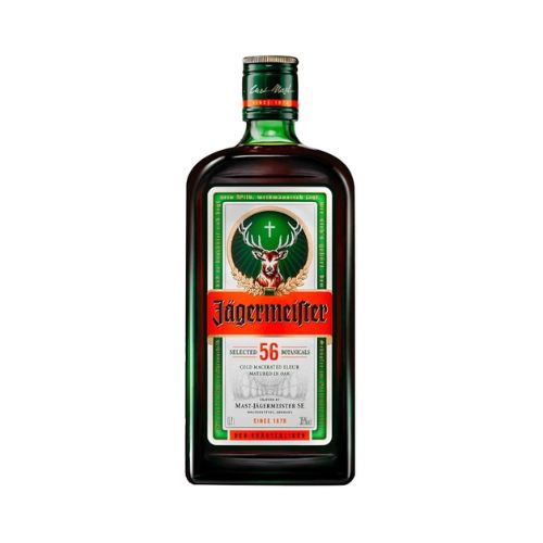 Bouteille de liqueur Jägermeister. Une liqueur allemande élaborée à partir d’un mélange de plantes, d’herbes et d’épices, reconnue pour son goût intense et aromatique.